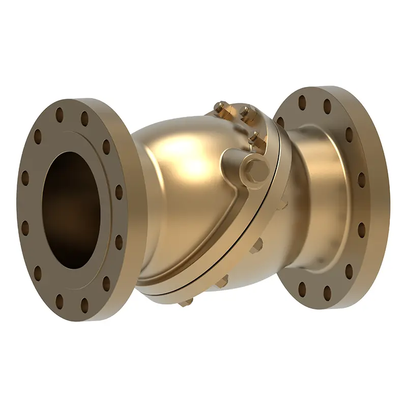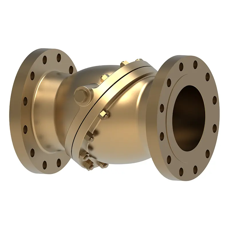 कांस्य झुका हुआ डिस्क चेक वाल्व द्रव के एक तरह से नियंत्रण को प्राप्त करने के लिए एक इच्छुक डिस्क संरचना को अपनाता है। यह पहनने के प्रतिरोधी, संक्षारण प्रतिरोधी और उच्च शक्ति कांस्य से बना है। यह पाइपलाइन सिस्टम के लिए उपयुक्त है जिसमें द्रव प्रवाह स्थिरता के लिए उच्च आवश्यकताएं होती हैं और पानी के हथौड़े से बचने की आवश्यकता होती है, जैसे कि कुछ सटीक उपकरणों के शीतलन प्रणाली, उच्च वृद्धि वाली इमारतों की जल आपूर्ति प्रणाली, और पानी या तेल के साथ पानी या तेल की आपूर्ति और जल निकासी प्रणाली।